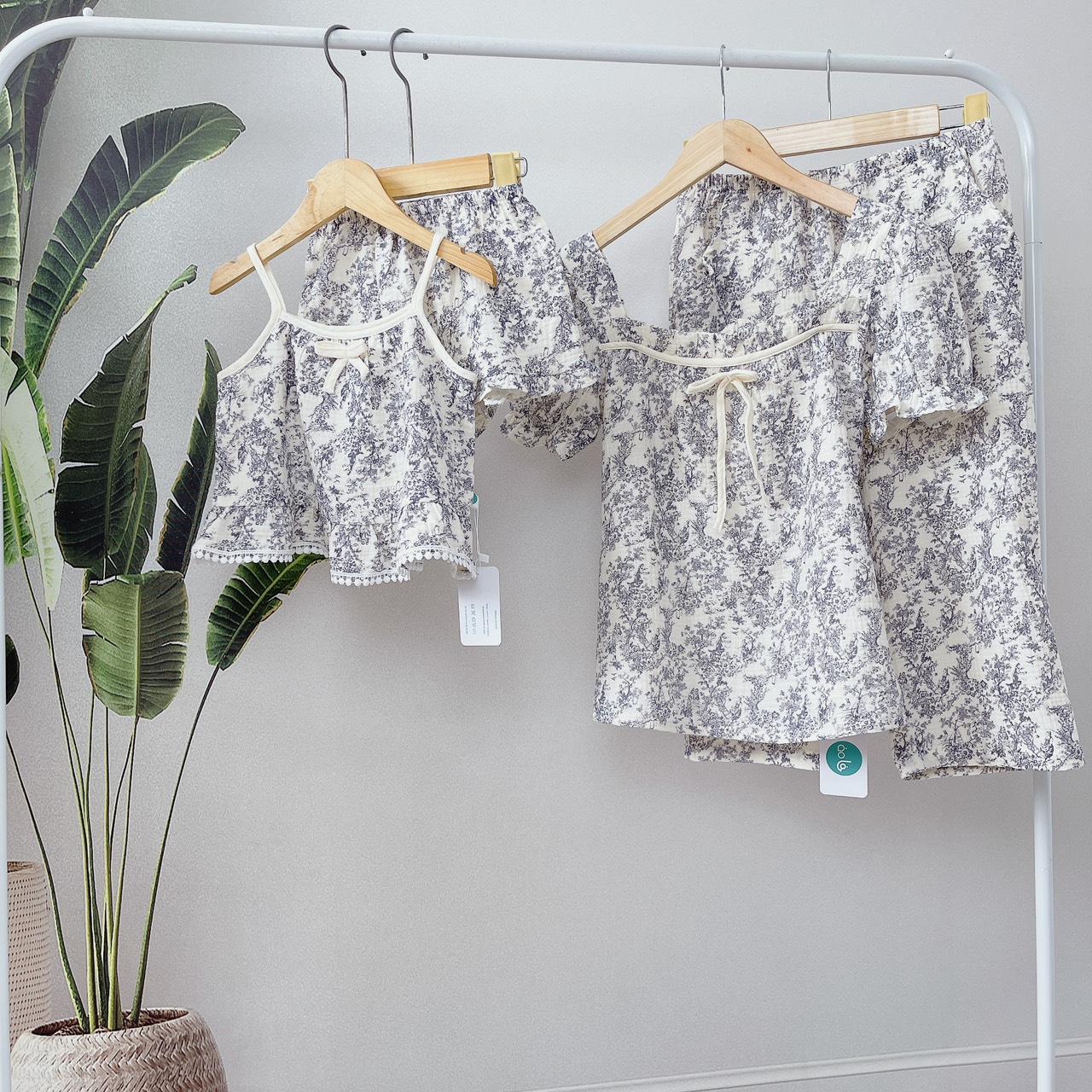 Bộ mặc nhà nữ xô muslin Áo Lá Homewear A153, đồ bộ lửng nữ cho mẹ, đồ đôi mẹ bé